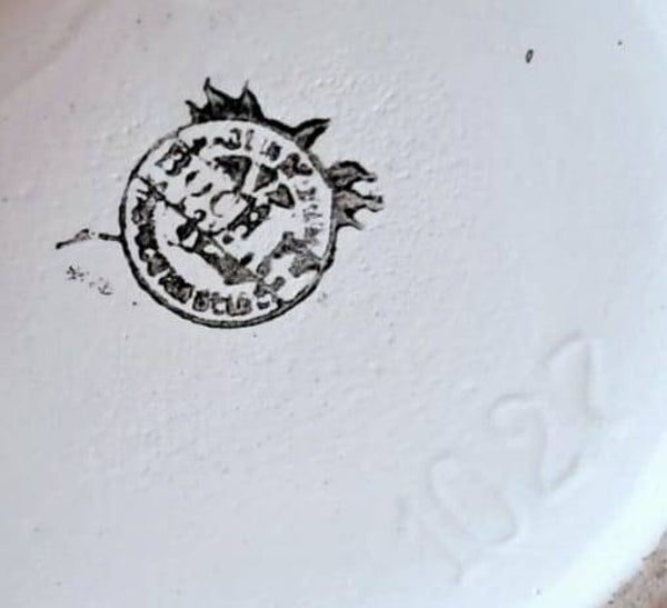 Le dessous du vase porte l'impression "1027" ainsi que le sceau Boch en noir. Ce modèle est illustré à la page 293 du livre "Art Deco Ceramics Made in Belgium, Charles Catteau".